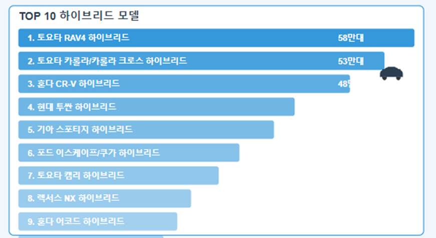 - 컴팩트 SUV 및 세단형 하이브리드 인기